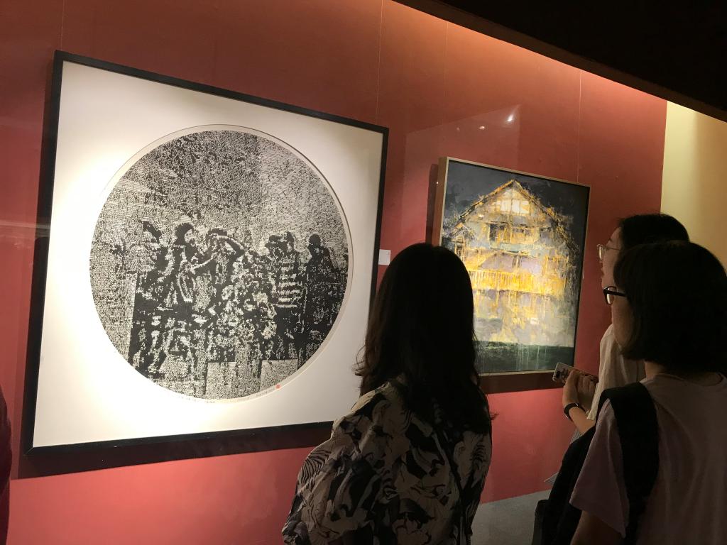 昨天,天朗气清,惠风和畅,美院17美术师范1班、18美术师范1、2、3共4个班级学生在蔡可群老师、陈伟老师、黄良老师的带领下,于上午9时乘校车到市府路温州博物馆参观了“与温州同行——庆祝人民政协成立70周年美术书法作品展”。 开幕式现场 展厅气象清新,参观者络绎不绝。简短的开幕式后,师生们漫步其间,三五成群,认真观摩点评,于上午11时准时离场返校,切身感受到温州本土文化的熏陶,收到了良好的实地观摩学习效果。本院蔡瑞蓉、谢子静、蔡可群、李利民、陈伟、陈旭海等老师各有作品入展。 学生观摩 蔡瑞蓉:《守望的形式》综合材料 李利民:《聚焦中国》水彩作品 陈伟:《镜像观者,行者》木刻版画 陈旭海:《农历二月初一.日记》版画 谢子静:《款款飞回夕照斜》中国画 蔡可群:《柿子正红》油画