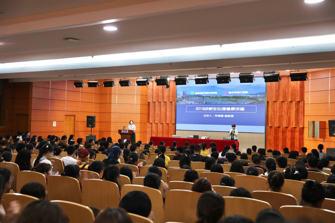 2019年9月6日晚6:30,由pg电子官方网站和生命与环境科学学院共同举办的2019级新生心理健康讲座于岩松堂雁山厅顺利举行。本次讲座由pg电子官方网站心理专家张海音副教授主讲,给新生们带来了一场“干货满满”的心理适应之旅。