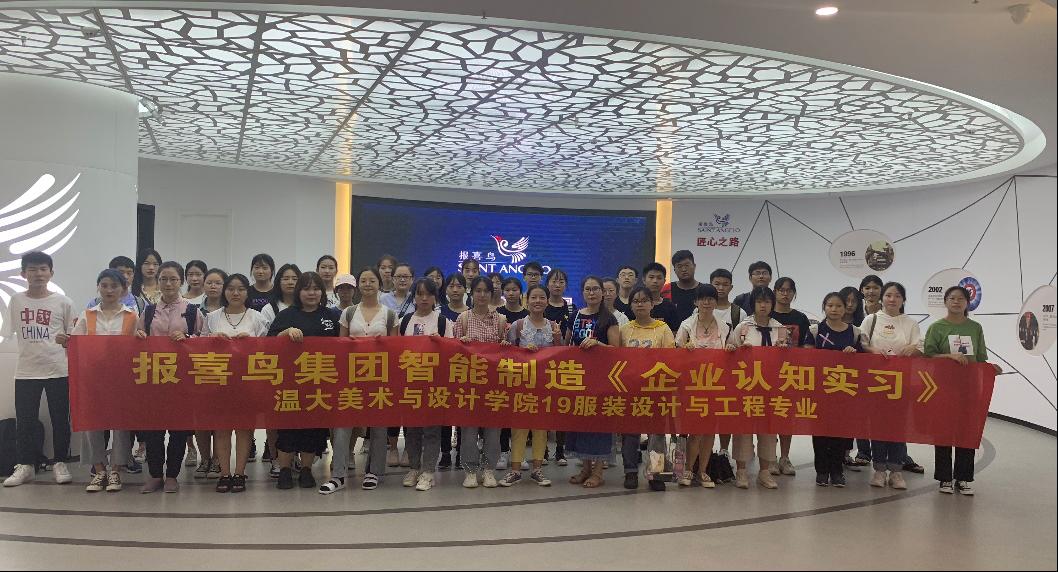 9月19日,由徐慧娟老师带领的19级服装设计与工程(卓工超豪示范班)全体学生来到报喜鸟控股股份有限公司参加企业认知实习。报喜鸟公司给师生们安排了专业讲解员,为师生们详细地讲解了企业的发展历程,陪同参观了报喜鸟凤凰尚品体验店、发展史展览厅、智能制造车间以及服装自动化物流配送中心,学生们目睹了百强服装企业之强,也体会到一个企业之强,强在魂魄、人本和技术。