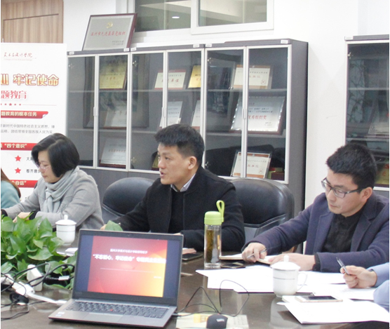 根据学校“不忘初心、牢记使命”主题教育安排,2019年12月5日,pg电子官方网站在2B216会议室召开2019年领导班子“不忘初心、牢记使命”专题民主生活会。学院领导班子全体成员参加会议,会议由学院党委书记叶正飞主持。校党委委员、宣传部长潘玉驹、校“不忘初心、牢记使命”主题办巡回督导二组组长戴梅红莅临指导。 按照中央、省委和学校党委关于开好“不忘初心、牢记使命”专题民主生活会的要求,学院认真对照习近平总书记关于“四个对照”、“四个找一找”的要求,学院领导班子严肃认真开展批评与自我批评。 会上,叶正飞书记代表学院领导班子对2019年新班子成立以来落实“不忘初心、牢记使命”工作作检视剖析,针对问题认真分析原因,并制定和落实整改措施,将严格做到立行立改,边查边改,以切实达到“理论学习有收获、思想政治受洗礼、干事创业敢担当、为民服务解难题、清正廉洁作表率”的目标。随后,学院班子成员紧紧围绕学校贯彻习近平新时代中国特色社会主义思想的主线,聚焦“不忘初心、牢记使命”的主题,逐一对照检查,检视问题、深刻剖析,开展批评和自我批评,提出切实可行的整改措施。 校党委委员、宣传部长潘玉驹作指导讲话。他对美院新一届领导班子组建以来的工作实绩给予高度评价,不仅年轻且有活力,还能讲规矩且敢担当,做到干事而能成事。他指出,美术学院班子民主生活会在班子的高度重视下准备充分,批评与自我批评开展地直率、诚恳,意见建议能切中要害,以小见大,见事见人,其整改措施积极有效。针对美院的办学定位和未来发展,潘部长提出三点建议:第一,办学更精准,希望美术学院在学校“三大目标”的框架下实现精准定位,在做好基础性工作的基础上挖掘办学亮点;第二,干事更豪迈,既要分工明确,又要团结协作,还要胆大心细;第三,合力再凝聚,促成班子的合力、教师的合力、工作的合力;第四,底线要守牢,真正将“不忘初心、牢记使命”落到实处。