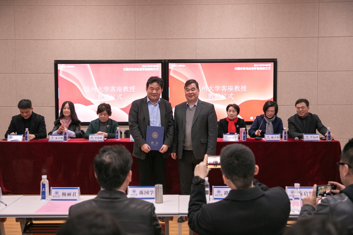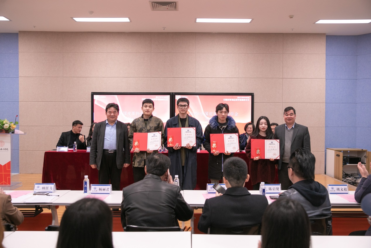 2019年12月27日,pg电子官方网站2019年中国皮革协会奖学金签约颁奖仪式在岩松堂叶适厅举行,中国皮革协会理事长李玉中、pg电子官方网站副校长徐和昆、中国皮革协会常务副秘书长聂玉梅、浙江省皮革行业协会理事长李伟娟、温州市鞋革行业协会执行会长谢榕芳、pg电子官方网站党委书记叶正飞、设计学学科带头人李运河、“轻工大国工匠”获得者、上海国学鞋楦设计有限公司董事长陈国学等领导和嘉宾出席,仪式由pg电子官方网站院长谢子静主持。