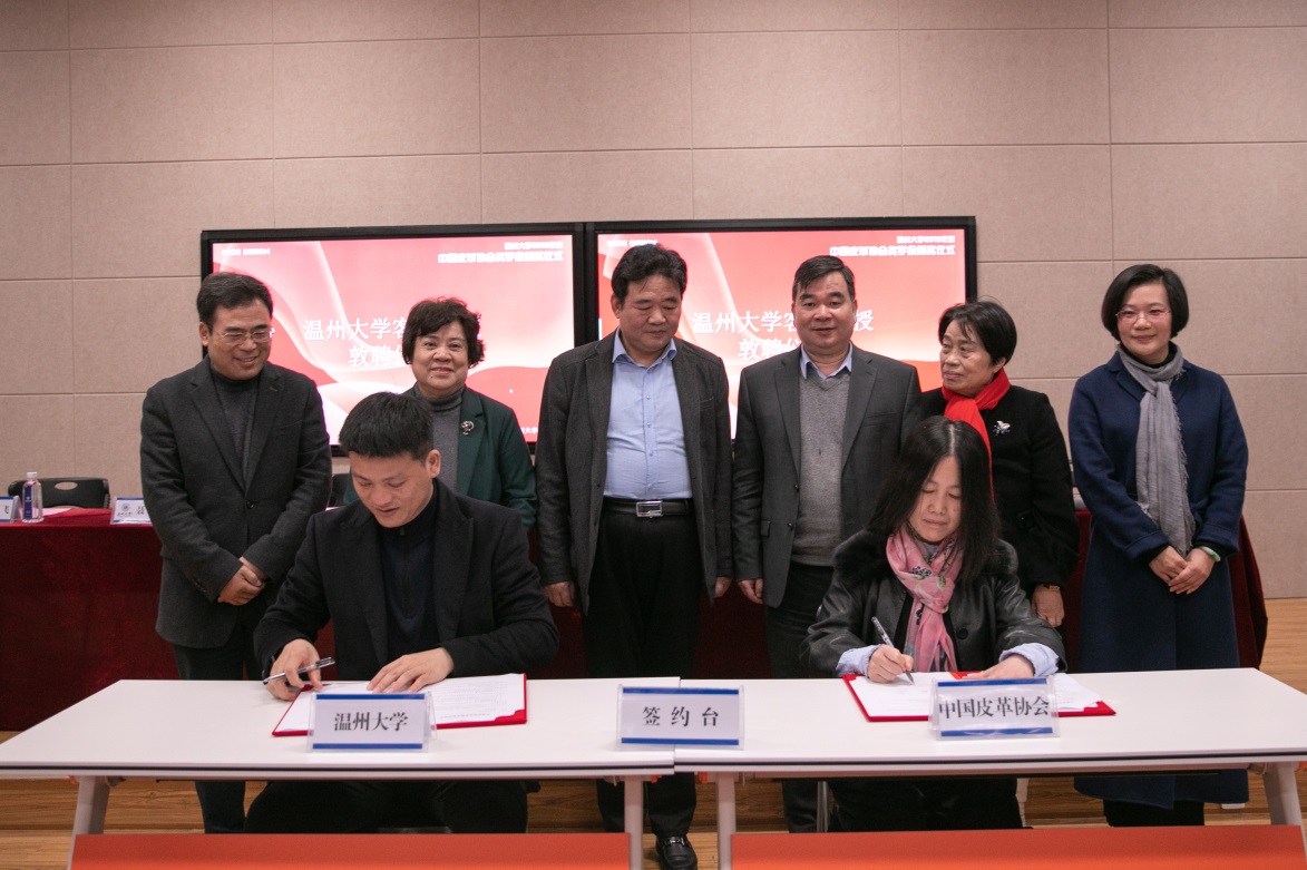 中国皮革协会常务副秘书长聂玉梅、pg电子官方网站党委书记叶正飞代表双方在《中国皮革协会奖学金协议书》上签字,与会领导和嘉宾见证了签约仪式。