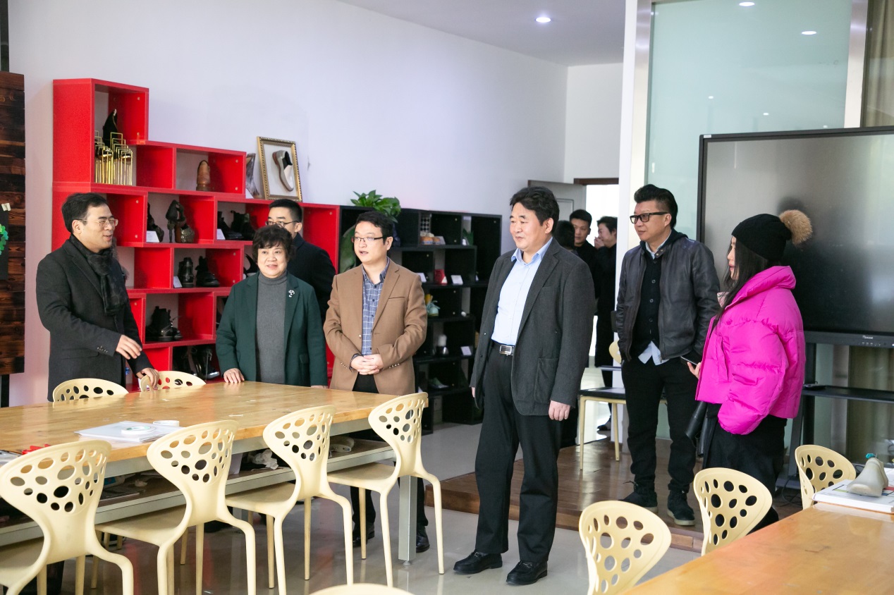 仪式开始前,李玉中理事长一行参观了鞋履与饰品设计专业设计工作室和实训中心,详细了解了鞋履专业与温州本土鞋企、科研院所开展深度联动,并将真实设计项目引进课堂,开展项目教学的情况,对pg电子官网高度重视产教融合、设计创作,为地方经济文化发展做出的积极努力和重要贡献表示赞赏。