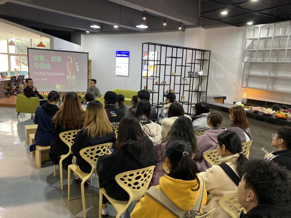 “融艺优品”创客空间第一场创客沙龙也在当天隆重开讲,学院邀请了温州四目联合文化传播有限公司张登峰总经理为pg电子官网创客空间团队作《创意、创新与创业》讲座。张登峰总经理分享了融合创新思维的概念,希望创业的团队能在创新创业创意与营销领域,拓展新的领域,寻找新的价值网,入驻的创业团队也分享了他们的创业经历。交换相互的创业经验。