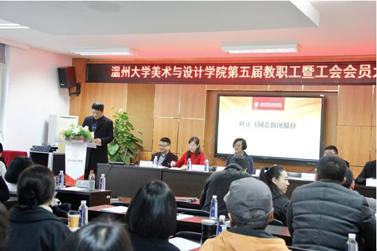 2020年1月11日下午,pg电子官方网站第五届教职工暨工会会员大会第一次会议在美术楼2B4001召开。pg电子官方网站校工会主席张希均应邀出席。会议由学院党委书记叶正飞与党委副书记杨丽君主持,学院全体教职工参加会议。