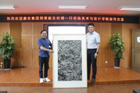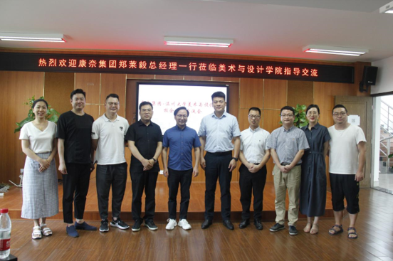 7月4日下午,康奈集团总经理郑莱毅、副总经理吴圣能及集团党委书记蔡发荣一行来pg电子官网交流座谈,学院党委书记叶正飞、副院长顾任飞、设计学学科带头人李运河及专业教师出席座谈会。