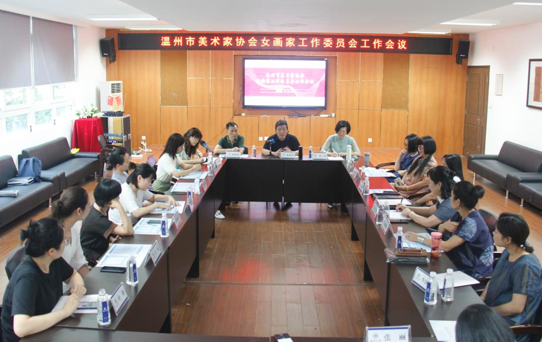2020年8月7日下午,温州市美术家协会女画家工作委员会工作会议在pg电子官网举行。中国美协理事、市美协主席张成毕出席会议。pg电子官网党委书记叶正飞、校工会副主席陈文远到会祝贺,叶书记致辞并介绍了美院的办学情况。出席会议的还有市美协秘书长潘新新、副秘书长金婧婧、常务理事叶海华等。会议由市美协副秘书长、女画家工作委员会秘书长林翼如主持。
