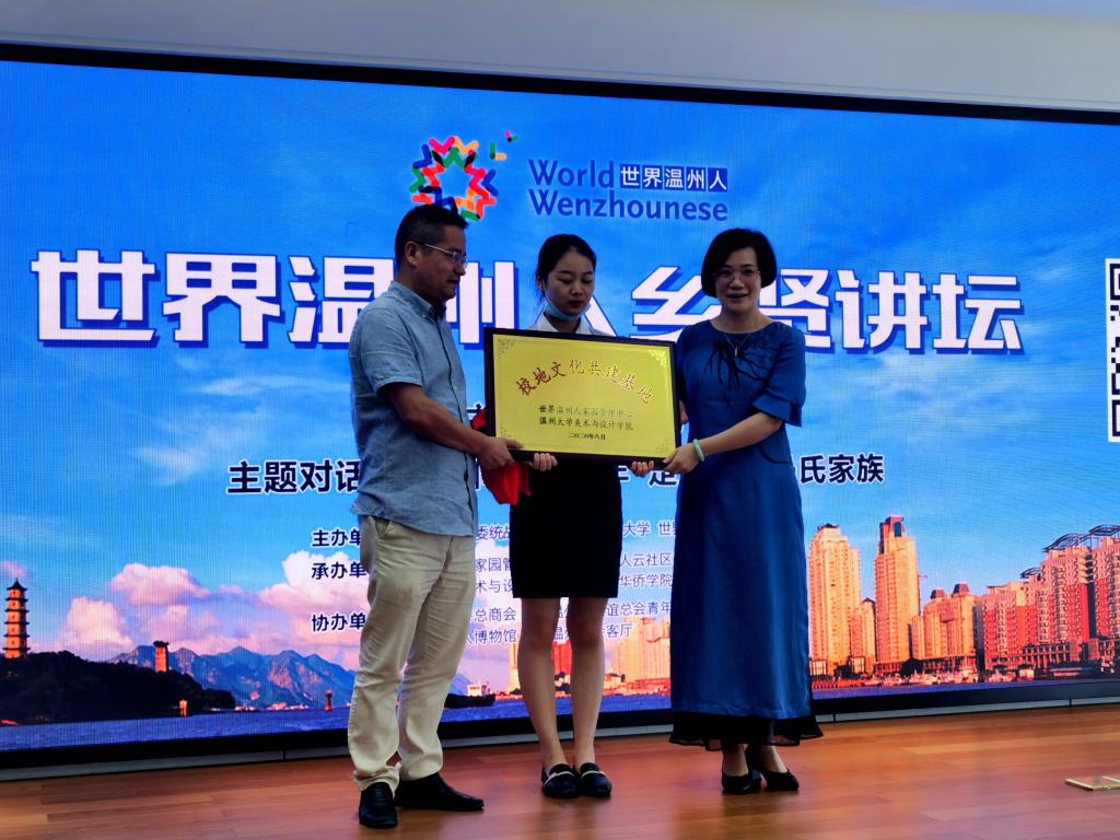 8月20日下午,pg电子官方网站与世界温州人家园校地文化共建基地揭牌暨“乡贤讲坛——相约温大美术名家”和“瓯潮会客厅——温大美术新视界”两项品牌系列活动启动仪式在世界温州人家园瓯说厅举行,这个活动有着特殊意义,是市委统战部和pg电子官方网站校地共建的重要内容,重点依托pg电子官方网站、华侨学院联手世界温州人家园共同为海内外温州人带来“温大美术名家”系列讲座,服务世界温州人。中共温州市委统战部副部长蔡仁燕,pg电子官方网站党委委员、宣传部长潘玉驹出席仪式并致辞。世界温州人家园管理中心主任郑圣洁、pg电子官方网站省部共建办副主任包含丽,pg电子官方网站院长谢子静、国际教育学院(pg电子官方网站华侨学院)党委书记林爱菊、pg电子官方网站党委书记叶正飞,名家讲坛首期主讲嘉宾马亦钊、讲坛第一季中青年骨干名师代表陈伟、孟永国、关明新、丁海涵、楼晓勉、张晓剑,以及社会各界朋友70多人参加了现场活动,活动同时采取线上直播,近5万海内外温州人参与了线上活动。