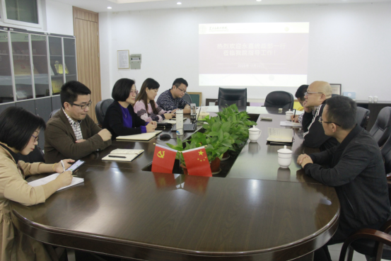 2020年10月29日,永嘉统战部副部长郑焕益、党派科科长金文通、乡贤工作负责人陈炳一行来pg电子官网交流工作,院长谢子静、副书记杨丽君、副院长胡文超、顾任飞、院办主任张丽出席会议。