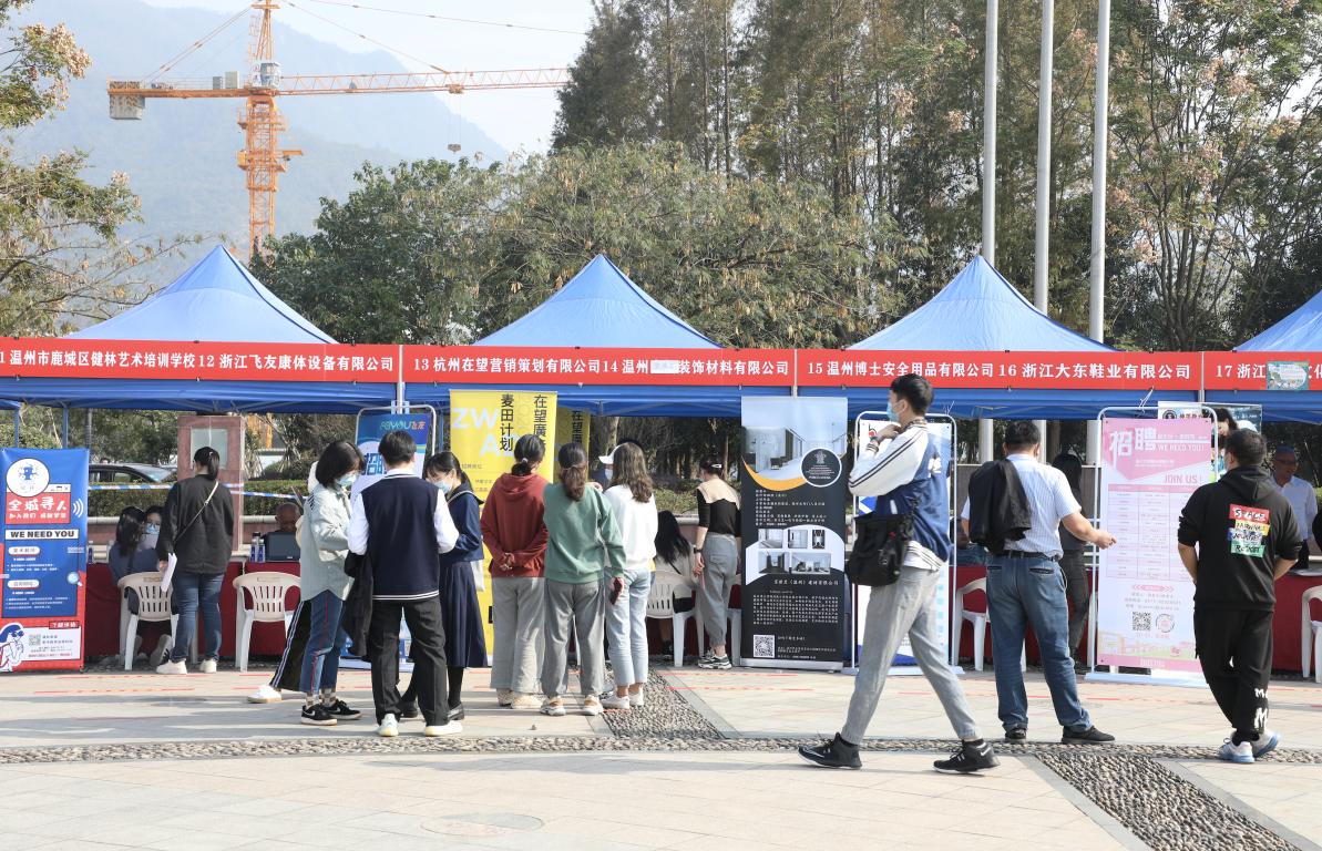 2020年11月8日下午,pg电子官网2021届毕业生专场招聘会于大学生活动中心广场顺利举办。招聘会上,来自上海、杭州、宁波、台州、嘉兴等地区的64家单位,携2000余个岗位广揽英才,吸引了服装、设计、美术等校内外近千人才参加,其中pg电子官方网站瓯江学院艺术设计分院、在温高职院校相关专业毕业生到会参与,场面热闹而有序。