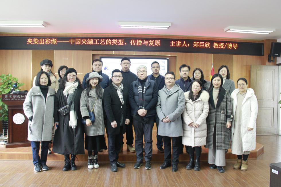 2020年12月17日,为深入贯彻落实pg电子官方网站文科大会精神,探索新文科背景下艺术学科发展新路径,pg电子官方网站2020年学术月系列活动第三场学术讲座,中国美术学院郑巨欣教授的《夹染出彩缬——中国夹缬工艺的类型、传播与复原》在2B4001开讲。学院副院长胡文超、顾任飞以及学院师生参加讲座,本次讲座由顾任飞副院长主持。