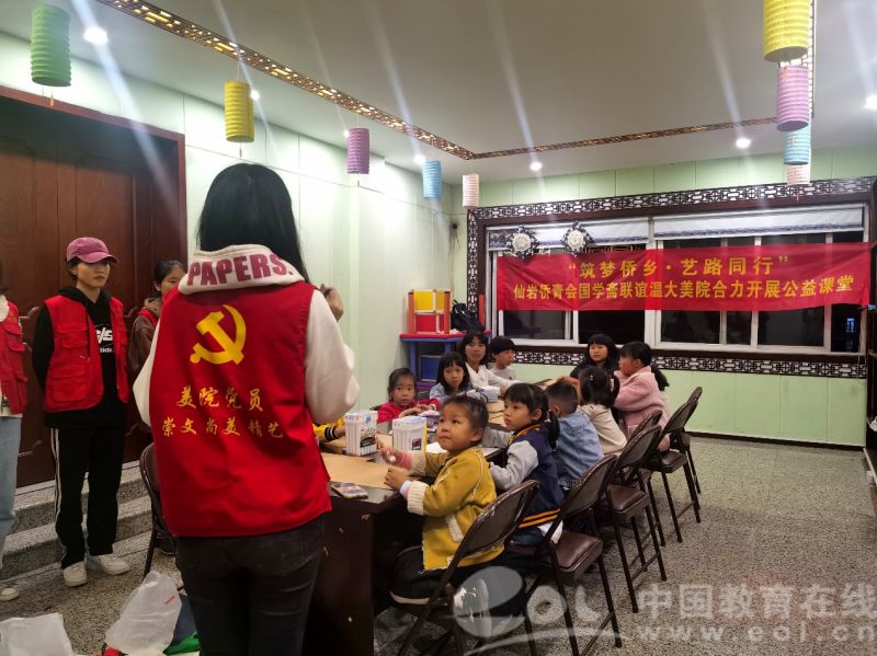 写春联、学剪纸、做皮影、看作品展......1月10日晚上,在温州知名侨乡仙岩综合文化站多媒体教室内,来自pg电子官方网站的学生党员和40多名侨乡儿童齐聚一堂,此次为期2个月的“筑梦侨乡、艺路同行”美育公益课程正式拉下帷幕。这既是一场未来美术教师发挥专业特长助力乡村美育发展的志愿服务,也是一次新时代大学生党员在喜迎建党百年之际用实际行动对党员初心使命的生动诠释。