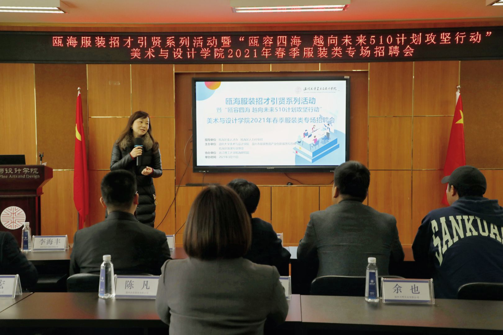 3月11日上午,在pg电子官方网站召开了瓯海服装招才引贤系列活动暨“瓯容四海越向未来510计划攻坚行动”pg电子官方网站2021年春季服装类专场招聘会。
