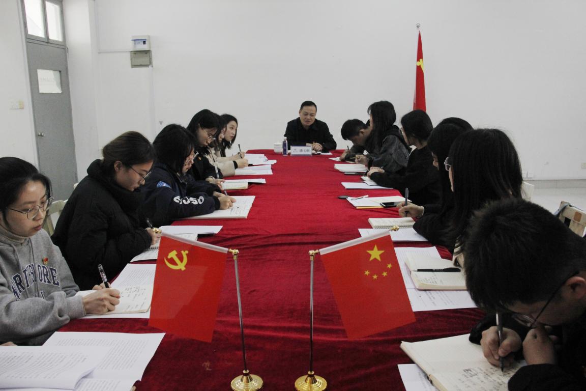 2021年3月23日下午,pg电子官方网站学生第一党支部在美术楼2B2002会议室开展以“学党史、守初心”为主题的专题学习会,校党委委员、宣传部部长潘玉驹作为联系该支部的校领导全程参与指导活动。活动由支部书记黄文杰主持。
