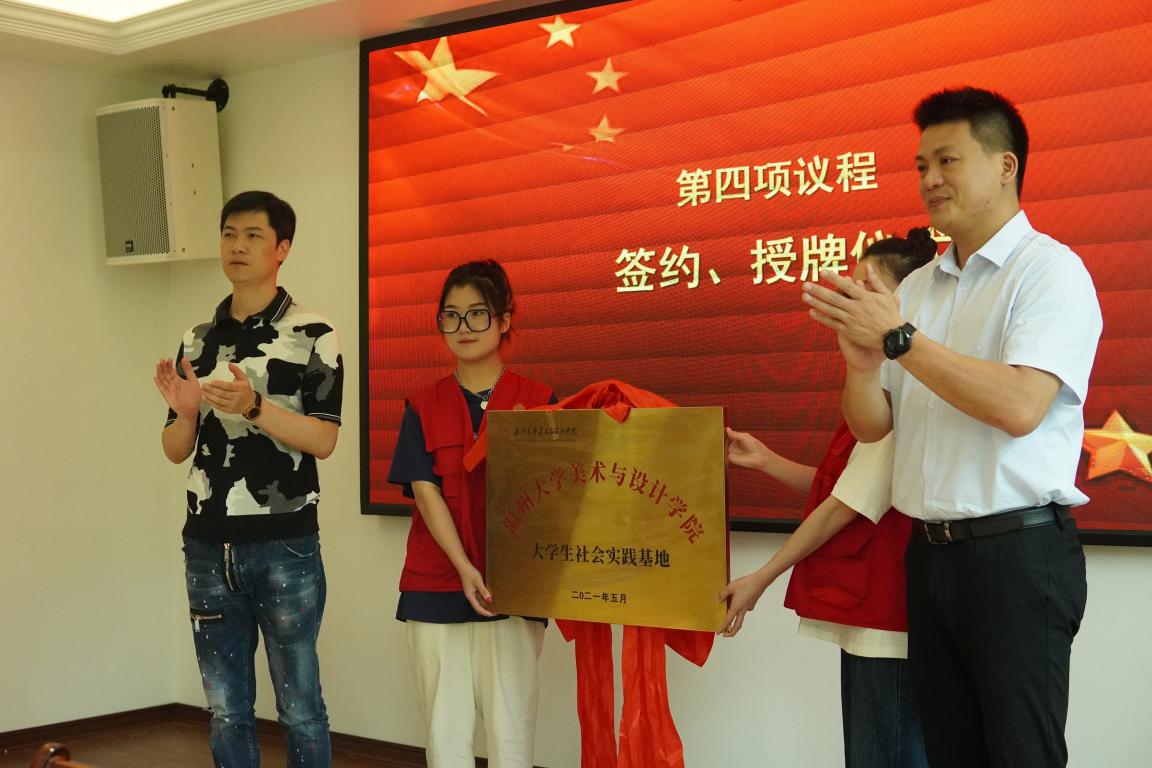 2021年5月17日上午,pg电子官方网站大学生社会实践基地签约、授牌仪式在仙岩侨联会议室顺利举行。温州市侨联副主席、瓯海区侨联主席翁蔡恩,仙岩街道统战部长苏丽东,仙岩街道文化、宣传部长夏成华,浙江省侨联副主席刘光华,仙岩侨联主席蔡玉弟,仙岩侨青会副会长陈海东,仙岩侨青会秘书长叶金环、秘书长助理王洲,pg电子官方网站党委书记叶正飞、副书记杨丽君等相关负责人参加了签约、授牌仪式。 首先,温州市侨联副主席、瓯海区侨联主席翁蔡恩致辞,他介绍了仙岩的基本概况及地方特色,并对pg电子官网“童画”志愿服务队的到来及开展的美育公益课堂表达了感谢和支持,蔡主席提出希望以本次大学生社会实践基地授牌为契机,与温大美院建立长期紧密合作,共同助力侨乡发展。 而后,杨丽君副书记对仙岩街道、仙岩侨联为pg电子官网学生社会实践提供的广阔平台和大力支持表达了真挚谢意,并介绍了我校的基本概况以及pg电子官网对社会实践活动的高度重视。 仪式上,杨丽君副书记和仙岩侨界青年联合会秘书长叶金环代表双方上台签约。叶正飞书记和仙岩侨界青年联合会常务副会长陈海东进行了授牌仪式。 随后,“童画”志愿服务队长罗雨忻作表态发言,她表示在今后的实践过程中将充分挖掘美育内涵,坚持理论与实践相结合,严格要求自己,不断提升自我、完善自我,为传承美育精神,弘扬传统文化,贡献青春力量。 最后,叶正飞书记发言,他提出社会实践是培养人才的重要环节,社会实践能够促进理论知识与实践知识有机结合,对学生了解社会、体验民意、增长才干、增进与群众的感情、增强社会责任感具有极为重要的意义。希望以本次社会实践基地的成立为契机,通过双方不懈努力,建立长期紧密合作,抓好落实,将社会实践项目多样化,努力促进双方交流,实现双赢。 据悉,“筑梦侨乡艺路同行”美育公益课堂是pg电子官方网站“党建+志愿服务”模式的一次探索,志愿服务活动以丰富的美育活动加强对侨乡孩子的关爱和教育。把传统文化、党史故事融入美育课堂,这既是温大师生反哺社会、服务侨乡的专业实践,也是当代大学生党员提升修养、增强党员实践能力,助力宣传党史教育的一次尝试,更是新时代大学生党员志愿者在喜迎建党百年之际用实际行动对党员初心使命的生动诠释。