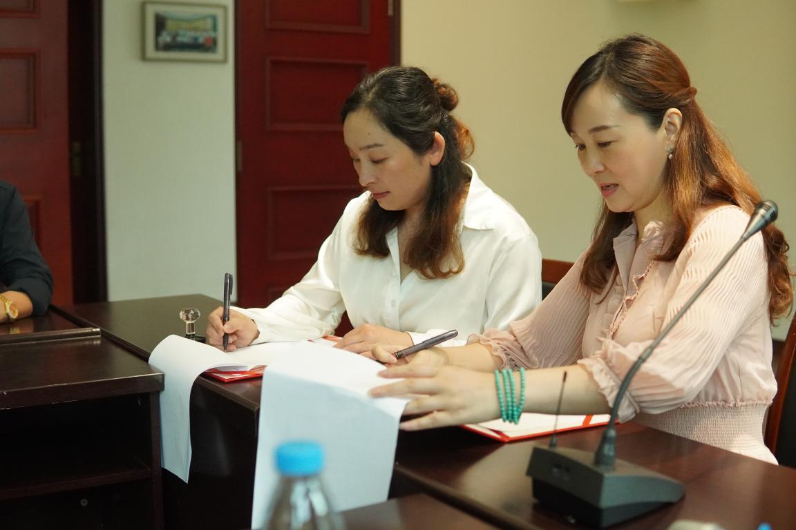 仪式上,杨丽君副书记和仙岩侨界青年联合会秘书长叶金环代表双方上台签约。叶正飞书记和仙岩侨界青年联合会常务副会长陈海东进行了授牌仪式。