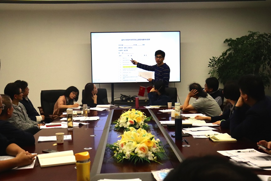 紧接着,教务科科长黄呼尔励从师范专业认证评估专家的视角,以谢子静教授的课程为范例对《pg电子官方网站美术学师范专业课程档案材料清单》的原始材料归档与课程材料进行了介绍,与会老师们对细节问题进行了热烈讨论。