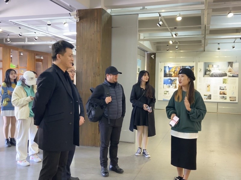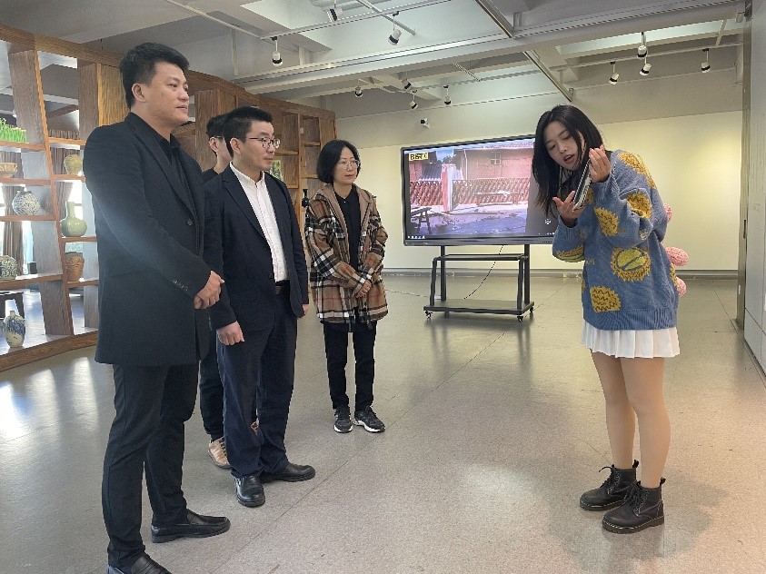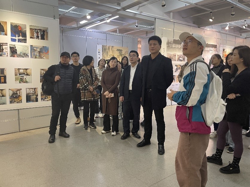 11月8日,pg电子官方网站环境设计系“行走的课堂”建筑空间设计课程展在pg电子官方网站展览厅开展。学院党委书记叶正飞、副书记杨丽君、副院长胡文超到现场观展,并与环境设计系黄玫玮、郑敬玉、潘怡、邓诗雨等指导教师与同学们互动交流。
