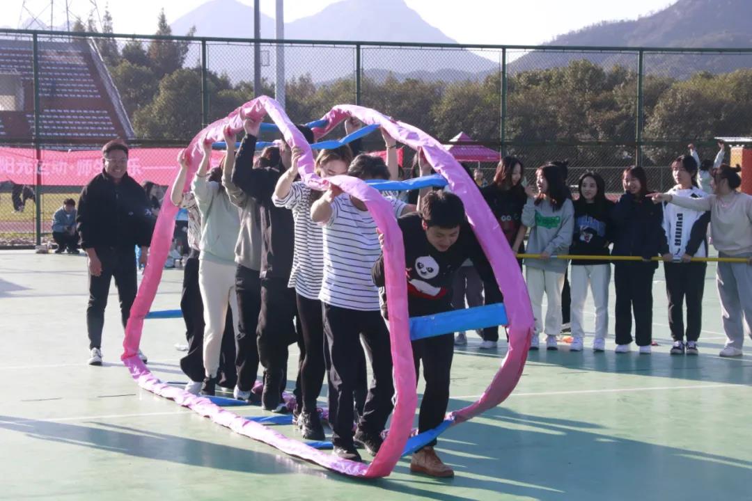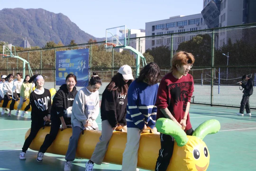 一个人可以走很快一群人可以走很远年轻、热血、伙伴、团队步履不停,不负好时光11月10日下午,美院2021-2022学年秋季趣味运动会在南校篮球场举行,由各班组成的26支队伍及2支教师职工队伍参加了比赛。在活动开始前,团学指导老师石建林老师为大家致了简短的开幕词,让同学们了解比赛规则并且明白举办此次活动的目的与意义。随后比赛正式开始。此次趣味运动会的比赛项目有“毛毛虫竞速”、“旋风跑”、“全场往返运球投篮”等六个项目。01毛毛虫竞赛:由于道具较重又比较胖限制了比赛队员的行进速度和动作,比赛是看起来像一只只胖胖的毛毛虫在摆动,很是可爱。02两人三足:培养了同学之间的合作意识,加强了合作默契。03车轮滚滚:同学们和老师配合的相当默契,最终顺利抵达终点。04旋风跑:同学们拿着长杆绕着柱子跑,惊险刺激的绕柱赛跑很有乐趣。05全场往返运球投篮:每个同学都很卖力,奋力的将手中的篮球命中篮筐。比赛成绩01毛毛虫第一名 教工二组第二名 教工一组第三名 20服设2班02两人三足第一名 20服工第二名 21设计7第三名 20环艺203车轮滚滚第一名 21服工第二名 教工组第三名 20环艺2、20服设1、20美师204篮球接力第一名 20环艺2、20服设1、20美师1、20美师3第二名 教工组第三名 20美师2、20美师3、20服设205集体跳绳第一名 21服工第二名 21设计1第三名 20视传06旋风跑第一名 21服工第二名 20环艺2趣味运动会欢乐的游戏使得大家乐在其中,丰富了同学们的课余生活,缓解了学习的压力,培养了同学之间的团结配合能力,增进了彼此之间的友谊,充分展示了大学生的良好精神面貌和体育风采培养了团结奋斗的团队精神展示了健康向上的青年形象。