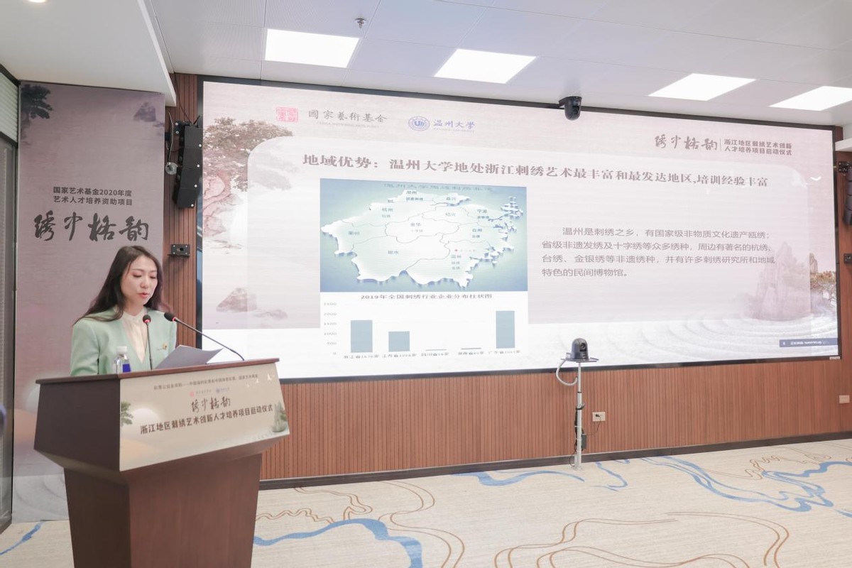 近日,由国家艺术基金资助,pg电子官方网站承办的“浙江地区刺绣艺术创新人才培养”项目启动仪式在pg电子官方网站隆重举行。温州市文化广电旅游局、中国非遗保护协会、pg电子官方网站有关领导,项目导师、专家以及来自北京、上海、江苏、浙江等地的学员共计40余人出席。