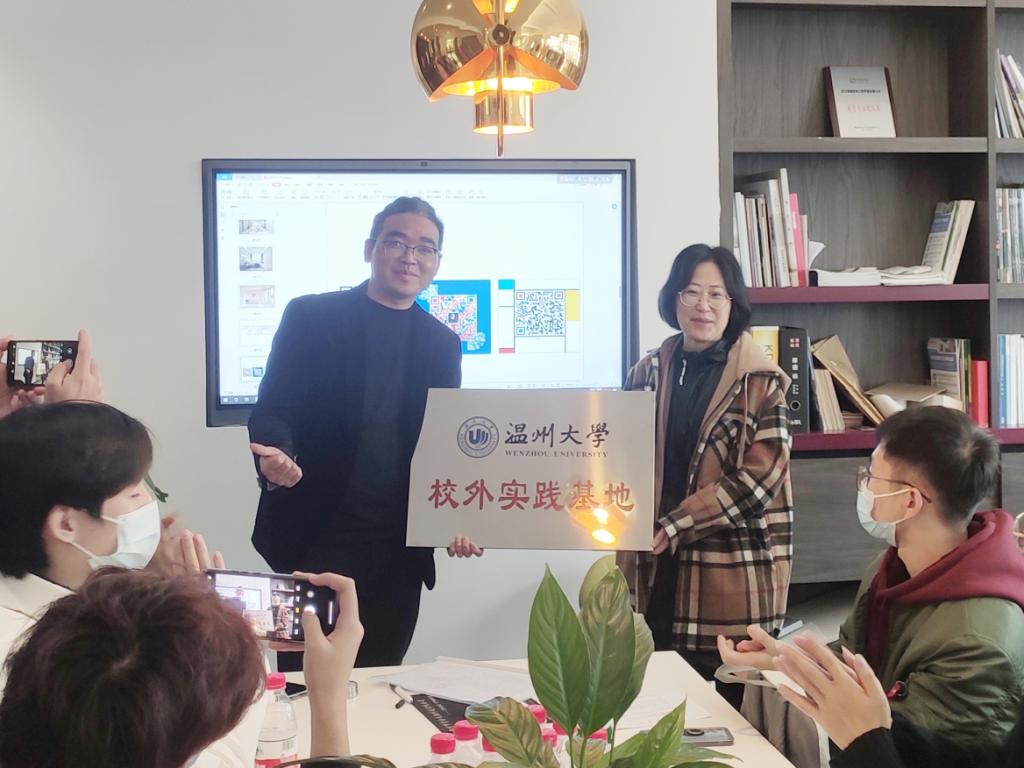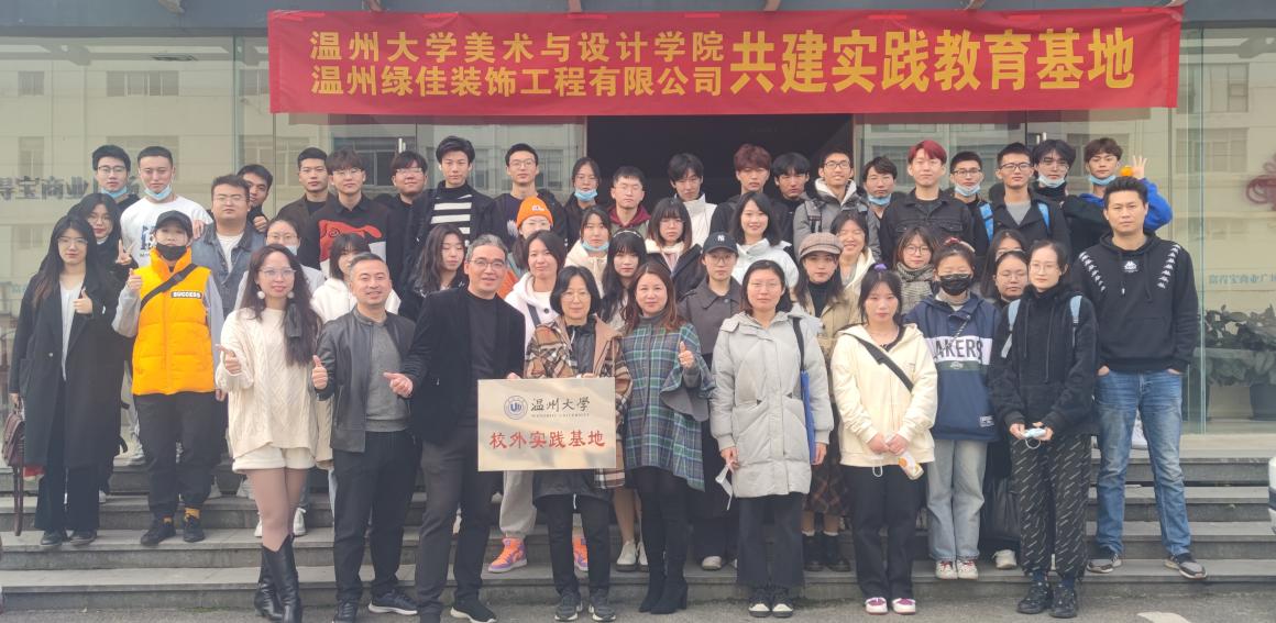 2021年11月25日pg电子官方网站和温州绿佳装饰工程有限公司举行“校外实践基地”授牌仪式暨交流座谈会。pg电子官方网站环境设计系主任黄玫玮老师、19级环境设计专业全体同学,温州绿佳装饰工程有限公司创始人朱书朋、章道锻先生及公司设计师团队共同参加,举行了校外实践基地的签约与授牌仪式。