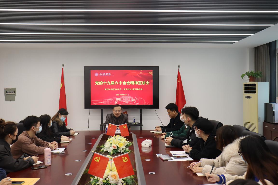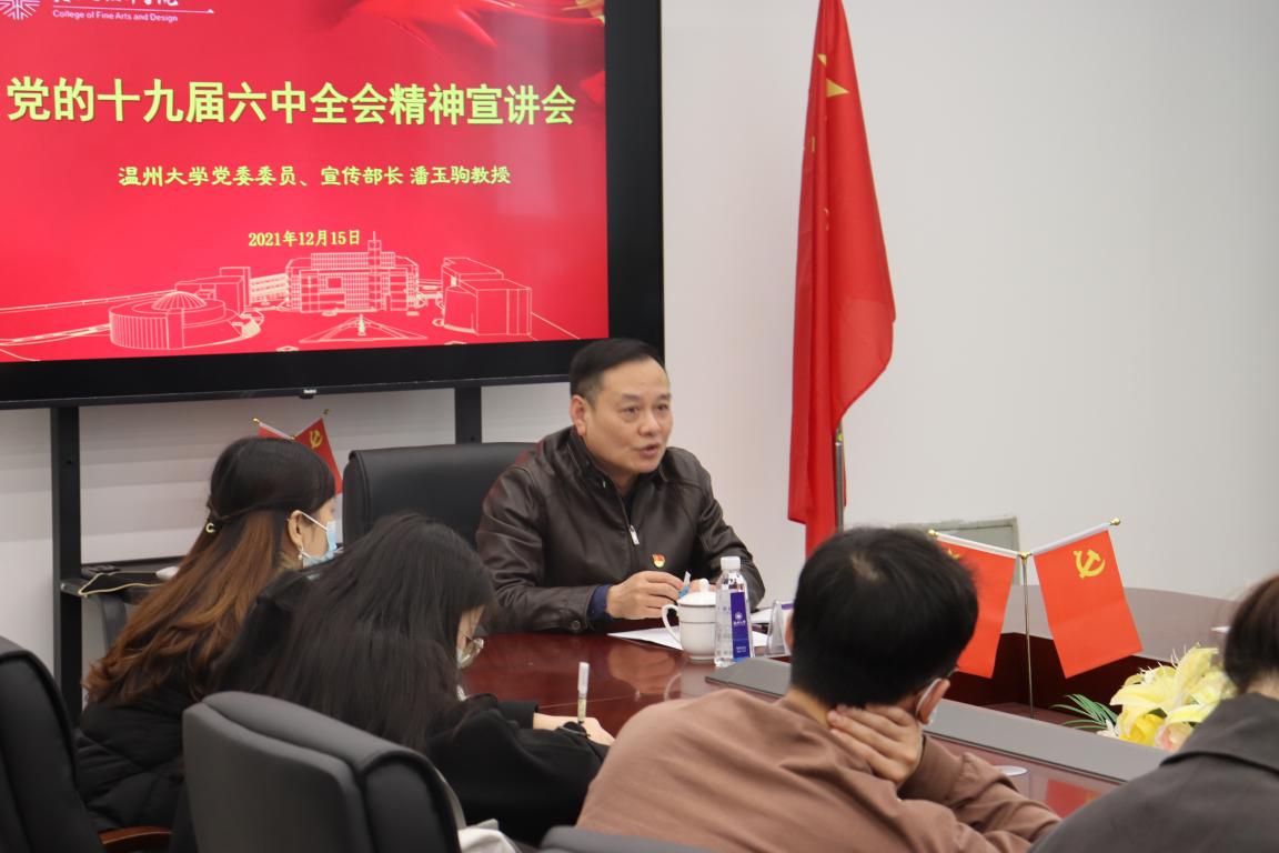 为深入学习贯彻党的十九届六中全会精神,深入领会全会精神内涵,12月15日下午,pg电子官方网站党委委员、宣传部部长潘玉驹教授进行了学习贯彻党的十九届六中全会精神宣讲。宣讲会由美术学院党委书记叶正飞主持,师生代表参加。