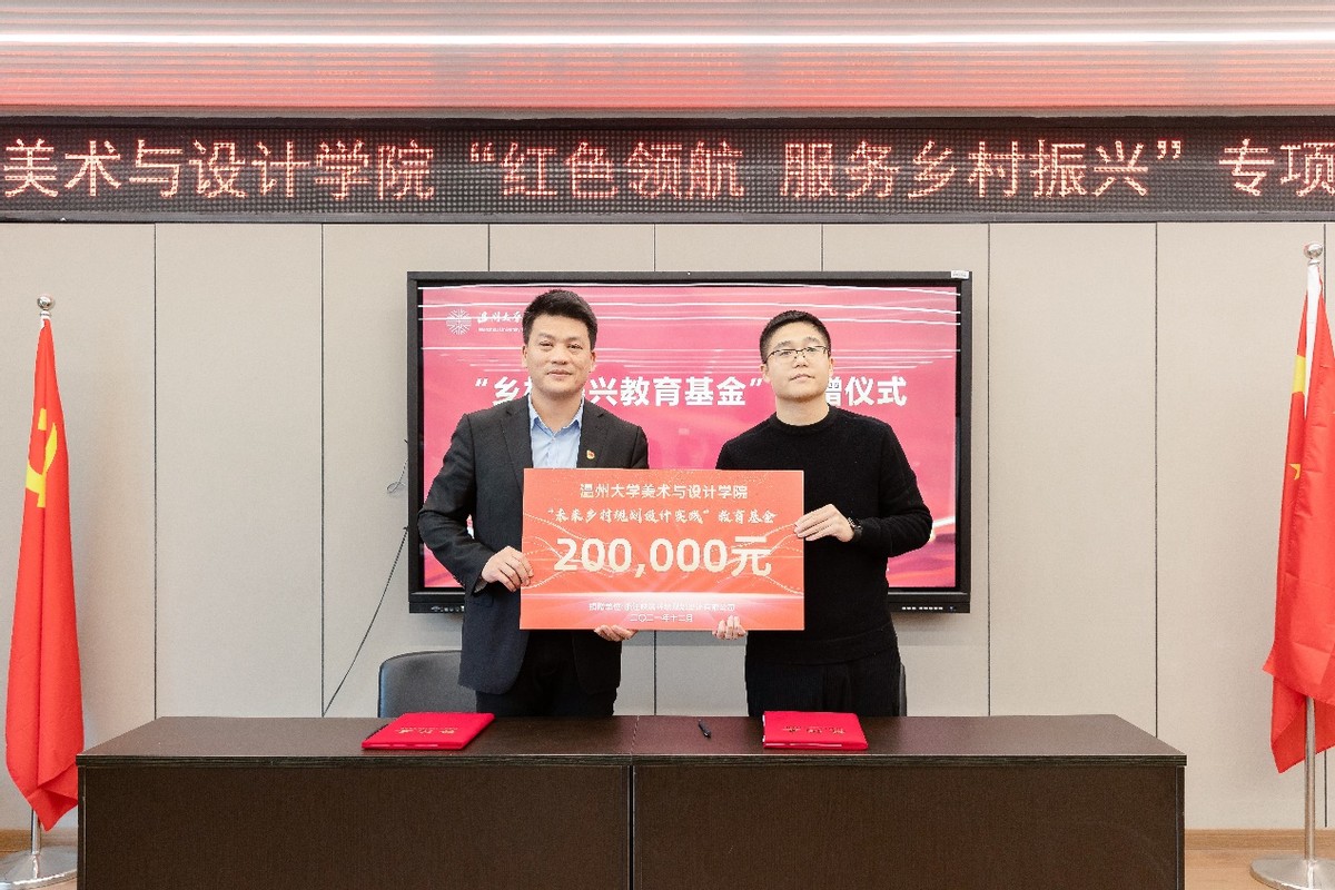 此次“红色领航 服务乡村振兴”行动,得到社会各界的大力支持,美院优秀校友、浙江映筑环境规划设计有限公司总经理颜士洲先生无偿捐赠20万元,成立“pg电子官方网站乡村振兴教育基金”,用于专项资助和奖励学院乡村振兴实践项目及服务乡村振兴领域做出贡献的优秀教师与学生。