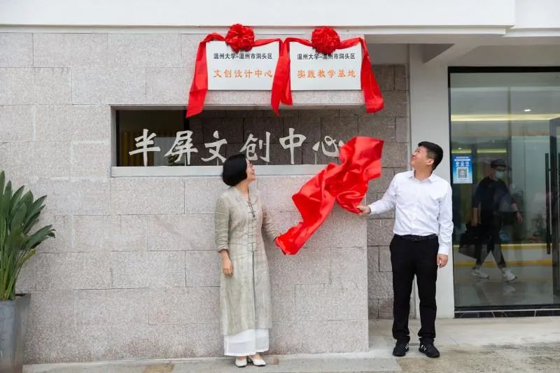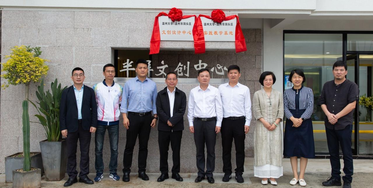 紧接着,在潘副校长、陈副主任的见证下,谢子静院长、贾约拿副区长共同签署温州市洞头区人民政府 pg电子官方网站关于共同推进洞头文化创意产业发展合作框架协议。同时,“pg电子官方网站-温州市洞头区文创设计中心”、“pg电子官方网站-温州市洞头区实践教学基地”成功揭牌。