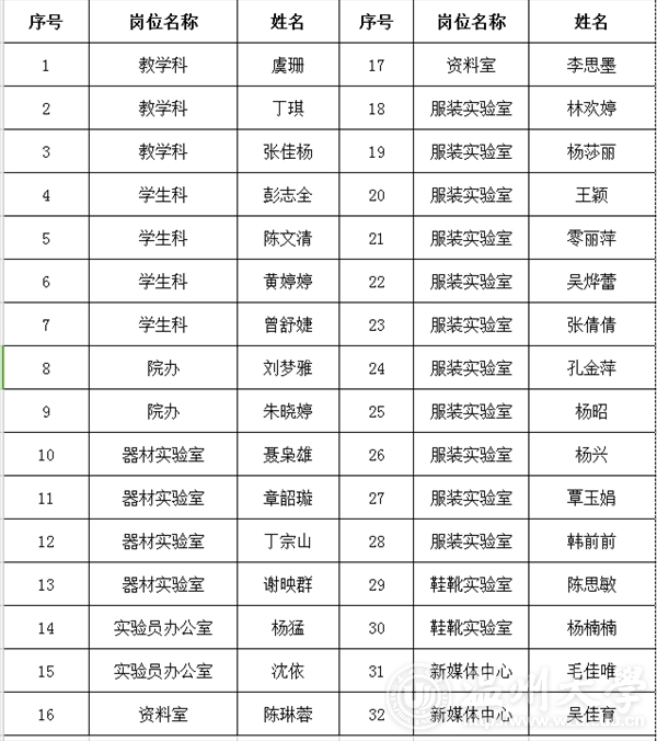 2016-2017学年第二学期pg电子官方网站勤工助学岗位名单