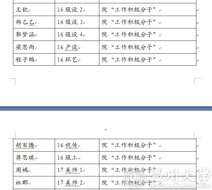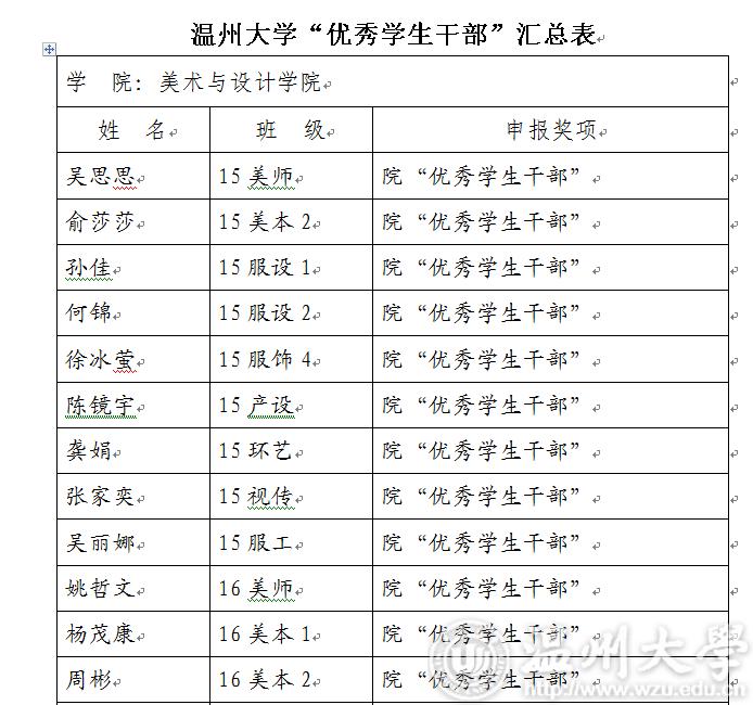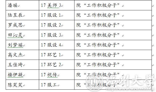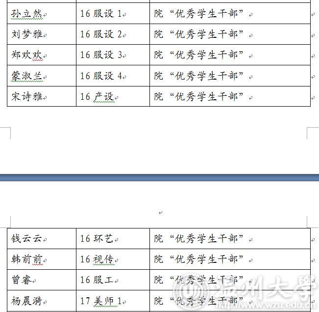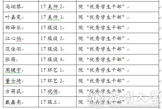 2017-2018学年第二学期pg电子官方网站“优秀学生干部”“工作及积极分子”名单