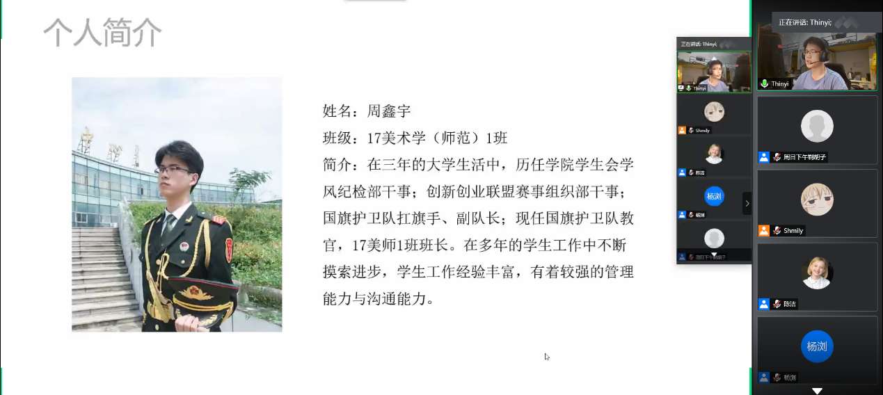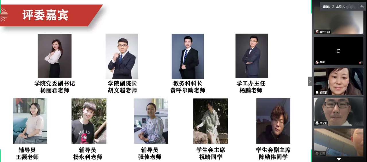 为推动学院学风建设,培养良好的院风学风,2020年6月3日晚上,pg电子官方网站学风建设推进会暨2019-2020学年五班十星评选活动在线上成功举行。本次活动面向全体美院学子,本次评选的评委有pg电子官方网站党委副书记杨丽君老师、副院长胡文超老师、教务科科长黄呼尔励老师、学工办主任杨鹏老师、辅导员杨永利老师、辅导员张佳老师,以及学生会主席祝晴同学、学生会副主席陈励伟同学。 评选活动伊始由主持人简单介绍评比规则,首先进行的是“五班”的评选。本次评选共有11个班级申报4项荣誉,各班级向大家展现了党建风采、学风建设、道德品质、科技创新等方方面面丰富多彩的班级风貌,彰显了美院班级蓬勃向上的积极学风。 在之后的“十星”评选中,共有18位学子申报8项荣誉。参赛选手的个人特殊都非常突出,从公益、科研、学习、体育、管理等方面展示了美院学子们全面发展的特质,也体现出美院学子学习成长的脚步一直未停歇。 在评比之后,杨丽君老师对同学们的展示做了精彩的点评。杨书记既肯定了pg电子官网学子优良学风以及在疫情期间的学习成果,同时也细心点评了参赛选手的不足,鼓励美院学子再接再厉,丰富五班十星各个项目全面发展。 本次评选活动,不仅调动了美院学生的学习积极性,也进一步发挥先进典型的模范带头作用,加强了学院的学风建设。相信美院学子会追寻各个优秀参赛选手的脚步,加强自身建设,勇争先锋一起前进!