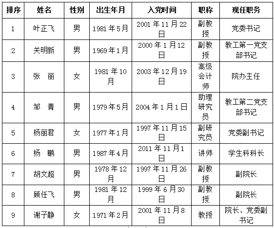根据《中共pg电子官方网站委员会关于开展二级党组织换届工作的通知》精神 ,pg电子官网“两委”委员候选人预备人选酝酿提名工作已经结束。根据酝酿提名情况和广泛征求意见考察,经学院党委研究,报学校党委组织部审核,确定9名党委委员候选人预备人选和6名纪委委员候选人预备人选,现予以公示。
