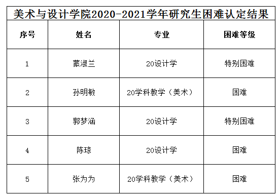 根据《浙江省学生资助对象认定办法》(附件1)、参照《pg电子官方网站家庭经济困难学生认定办法》(温大行政发[2020]37号)(附件2)规定,通过学生本人申请、材料审核、班主任和辅导员认定等多个环节,经学院学工会议研究决定,现将pg电子官方网站2020-2021学年研究生经济困难类型认定结果予以公示(见附件)。