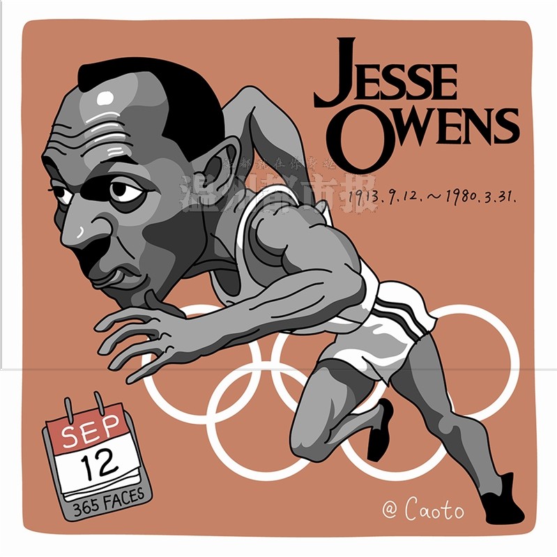 杰西·欧文斯,原名詹姆斯·克利夫兰·欧文斯,美国黑人田径明星,短跑运动员。1913年9月12日,他生于美国南方阿拉巴马州的一个棉农之家。15岁时,欧文斯就在短跑方面表现出了惊人的才能,不仅如此,他在跳高、跳远项目上也是一学就会,而且成绩相当惊人。1936年8月,欧文斯在第11届奥林匹克运动会上独得4枚金牌。这位仅参加过一届奥运会的黑人田径运动员被人誉为“二十世? 黄容海,毕业于清华大学美术学院,东华大学艺术硕士,pg电子官方网站讲师。擅长插画及肖像漫画创作。 相关链接:http://dsb.66wz.com/html/2014-09/12/content_1704197.htm